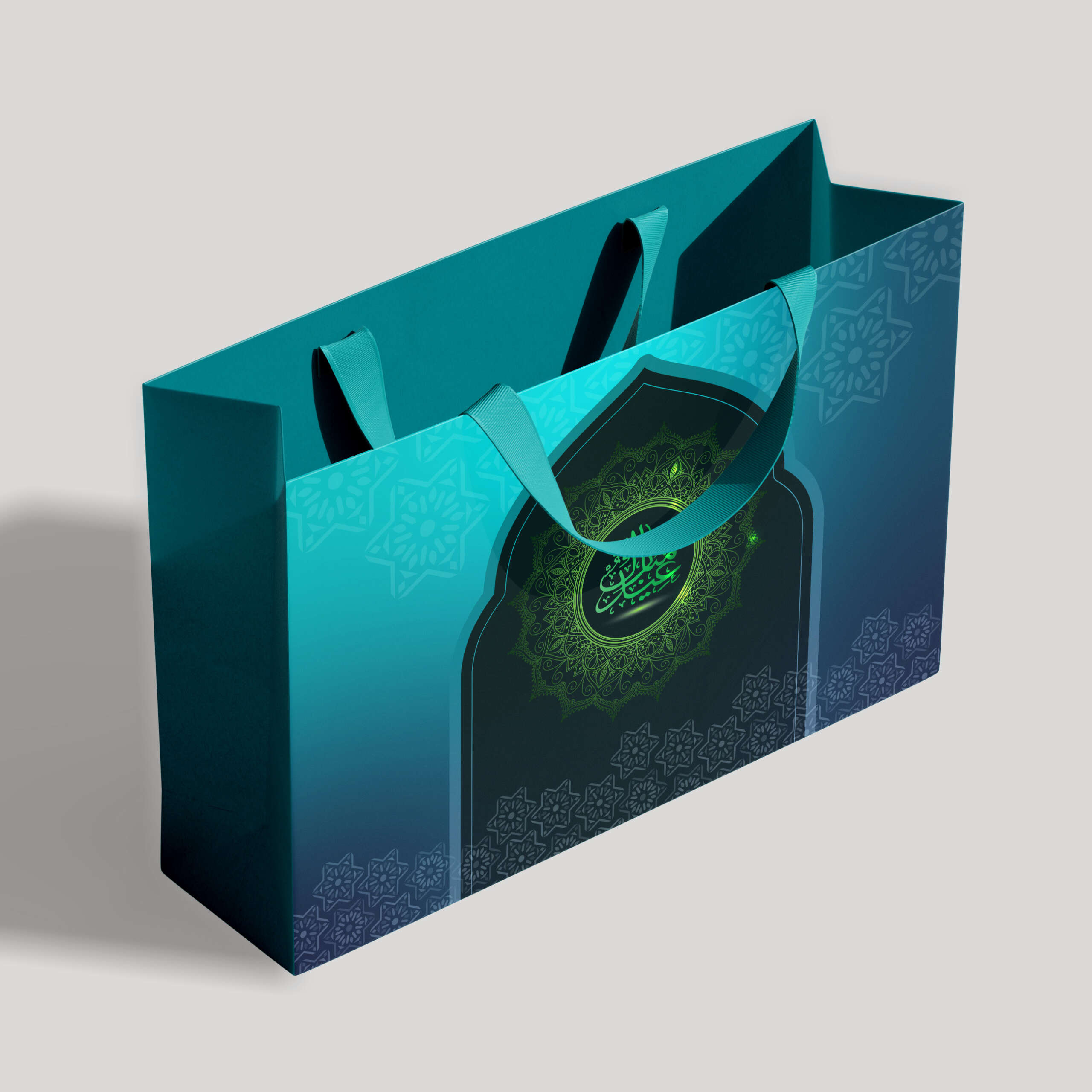এই প্রিমিয়াম শপিং ব্যাগটি সূক্ষ্ম ইসলামিক নকশার সমন্বয়ে তৈরি, বিশ্বাস ও রুচির নিখুঁত প্রকাশ। মাঝখানের সবুজ ক্যালিগ্রাফি ডিজাইন ব্যাগটিকে দিয়েছে এক অনন্য মর্যাদা ও সৌন্দর্য। উপহার, বিশেষ আয়োজন বা ব্র্যান্ড প্রেজেন্টেশনের জন্য—এটি শুধুই একটি ব্যাগ নয়, এটি একটি সম্মানজনক অভিজ্ঞতা।